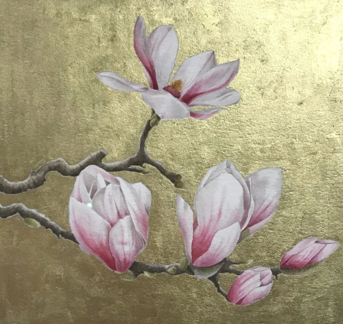 Students work on a detailed painting from observation to create a delicate and contrasting painting. They look at the forms of the magnolia branches and learn about creating hard and soft lines with colour. They create a textural, metallic background as a contrast to the delicate shapes that they paint.